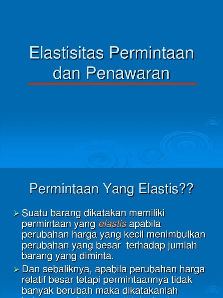 Tapi sebelumnya, untuk memahami konsep elastisitas permintaan dan penawaran, anda harus paham dulu definisi elastisitas. Makalah ini disusun agar pembaca bisa menambah wawasan serta memperlus ilmu pengetahuan mengenai . Elastisitas penawaran pengertian elastisitas penawaran elastisitas penawaran yaitu suatu pengukuran kuantitatif yang menunjukkan sampai dimana besarnya . Elastisitas penawaran (elasticity of supply) pengaruh perubahan harga terhadap besar kecilnya jumlah barang yang ditawarkan atau tingkat kepekaan perubahan . Elastisitas penawaraan atau elasticity of supply adalah pengaruh perubahan harga terhadap besar kecilnya jumlah barang yang ditawarkan atau tingkat kepekaan .